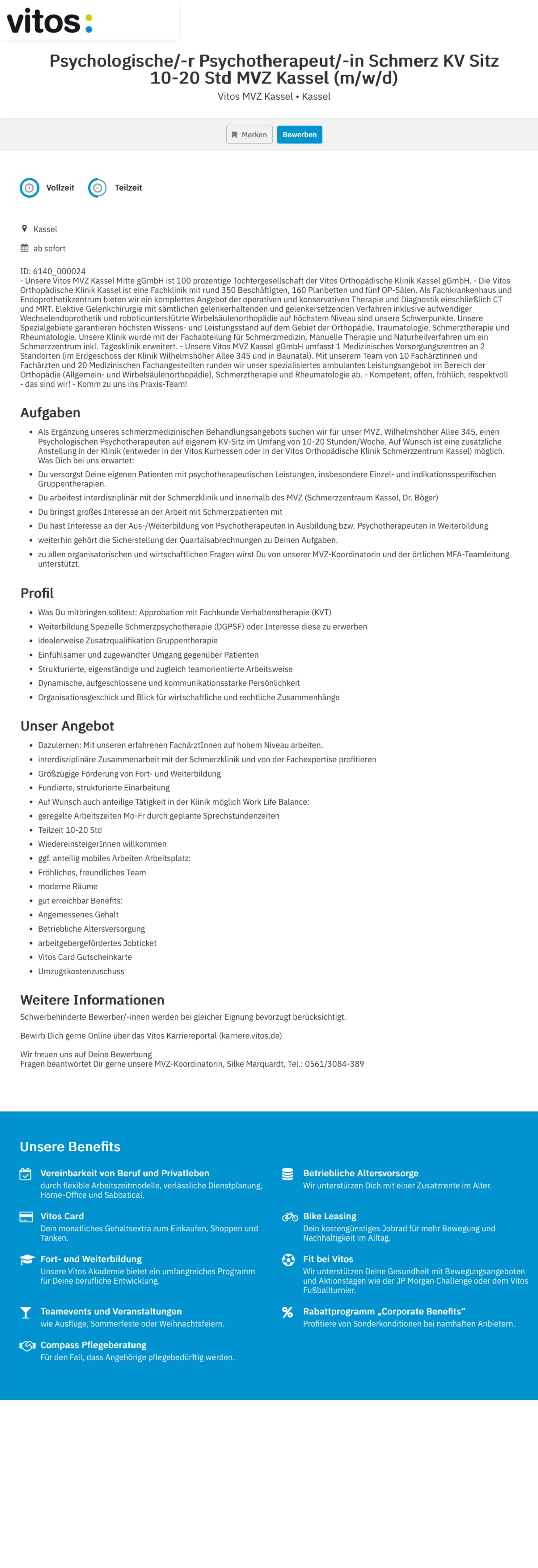 Psychologische/-r Psychotherapeut/-in Schmerz KV Sitz 10-20 Std MVZ Kassel (m/w/d)